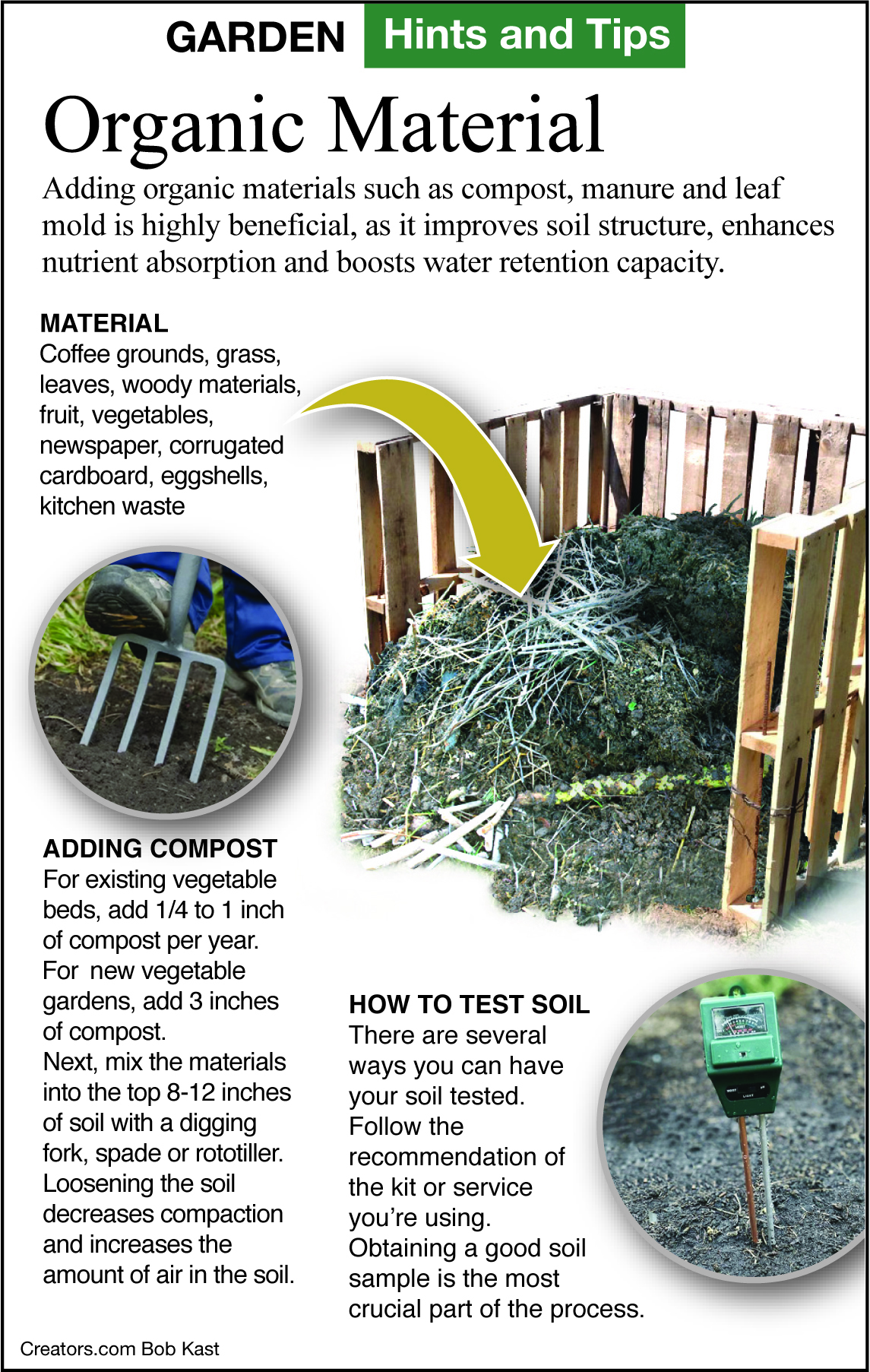 Q: I want to do more organic gardening this summer, but I am not sure how to tell if something is organic or not. I want to make my garden soil better by adding more organic matter. How much should I add?